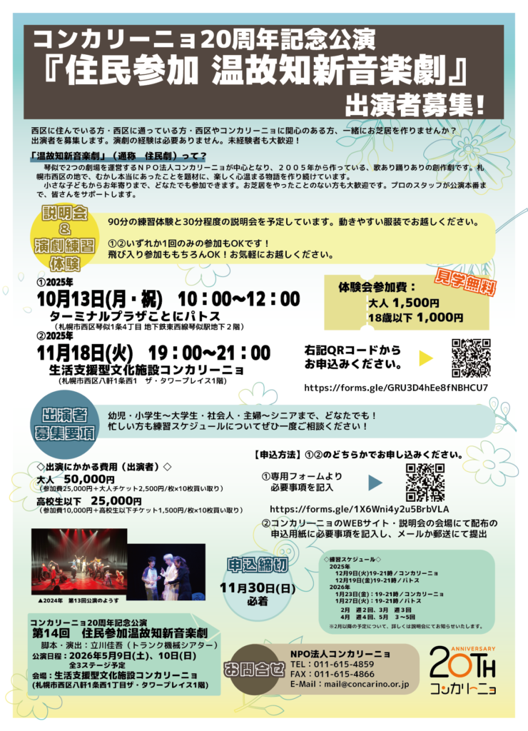 コンカリーニョ20周年記念公演『住民参加 温故知新音楽劇』 出演者募集!