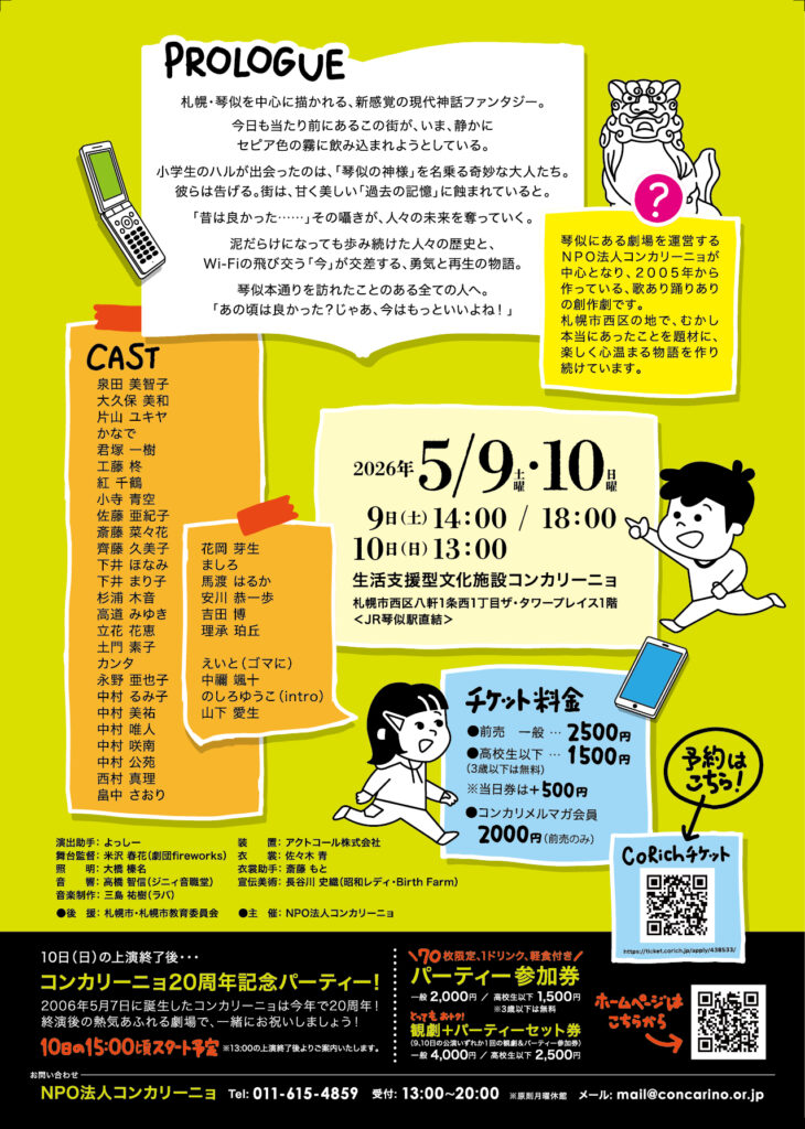 ★10日13:00公演終演後より15:00頃から20周年記念パーティ開催