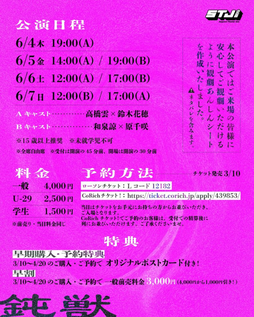 コンカリーニョ20周年記念提携企画 Sapporo Theater Jam企画 Vol.2『鈍獣』