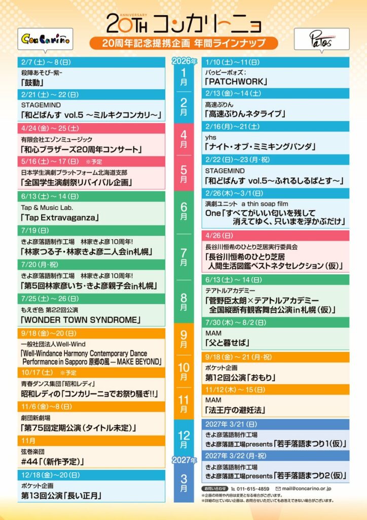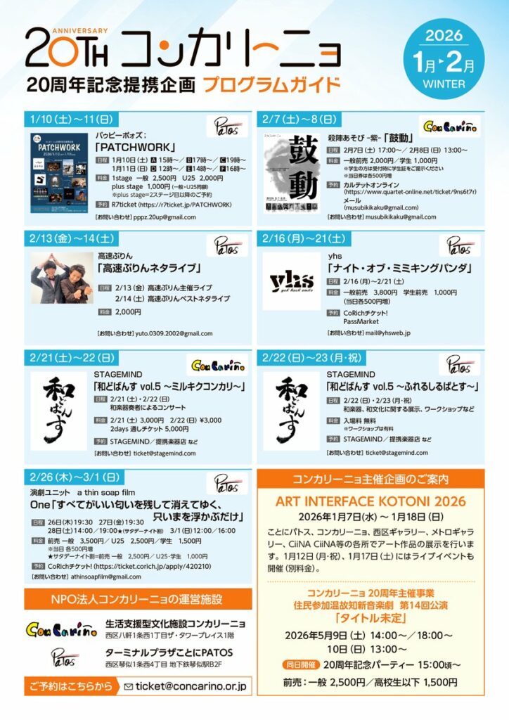 2026年1月〜2月にコンカリーニョ/パトスで行われるプログラムをご紹介します