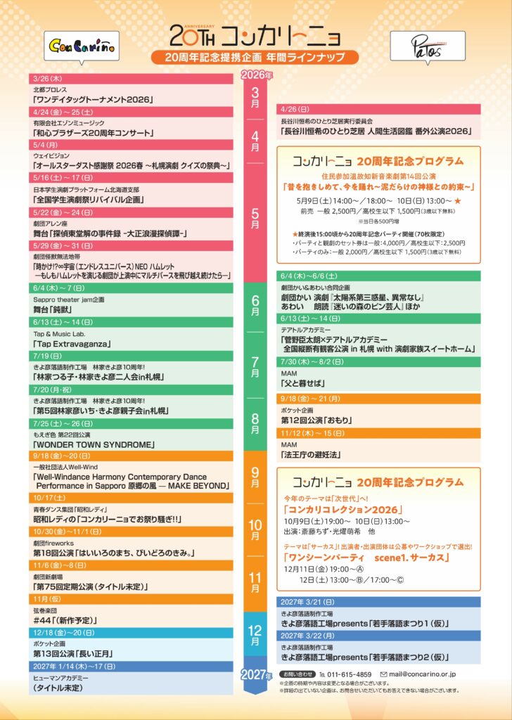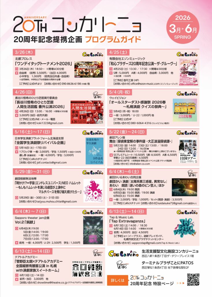 2026年3月〜6月にコンカリーニョ/パトスで行われるプログラムをご紹介します